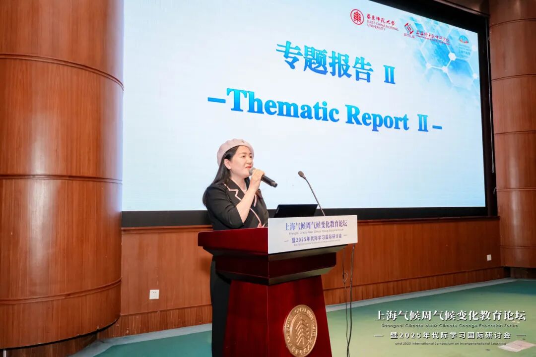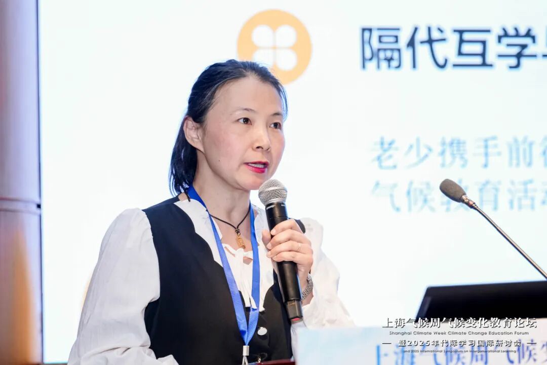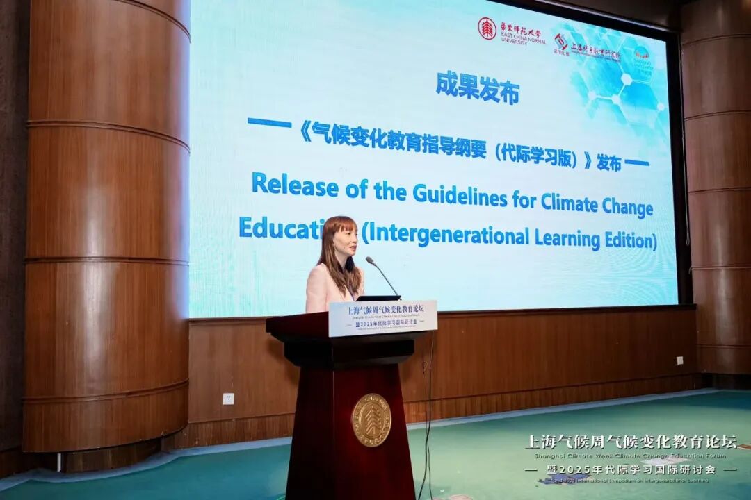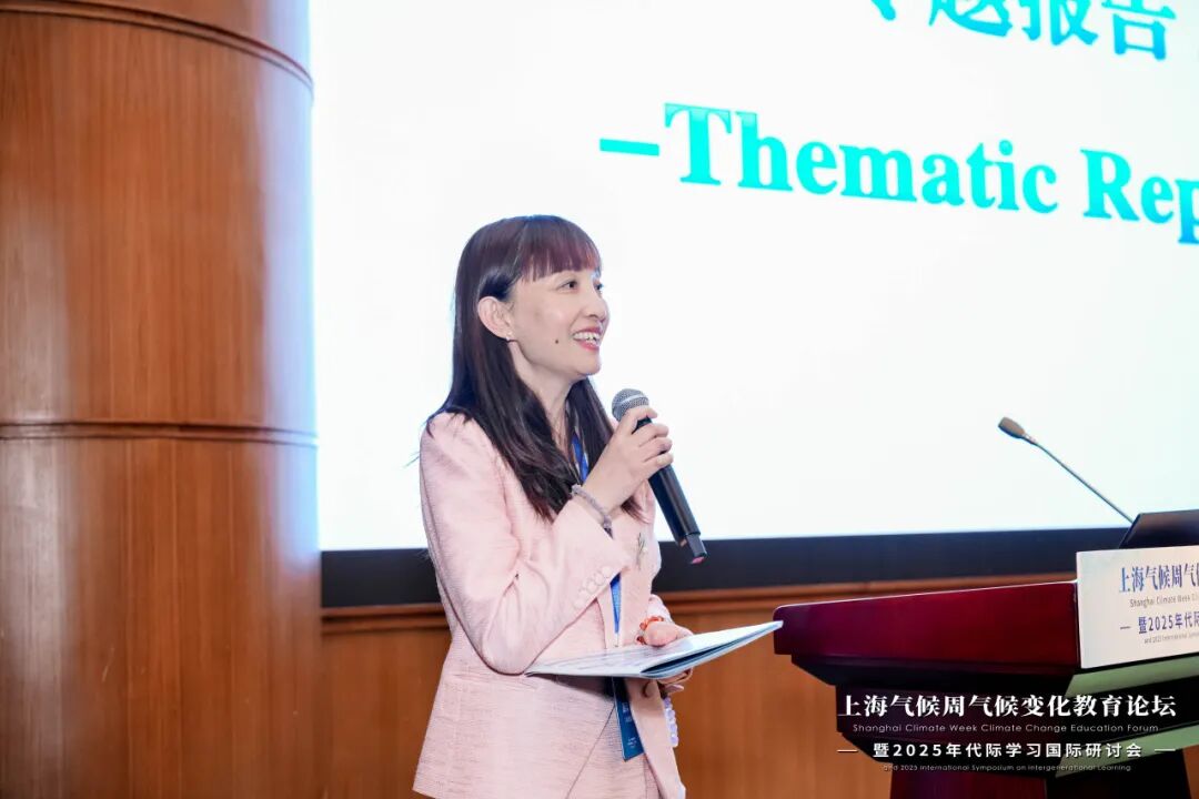 顾惠芬校长在成果发布环节介绍《气候变化教育指导纲要(代际学习版)》
