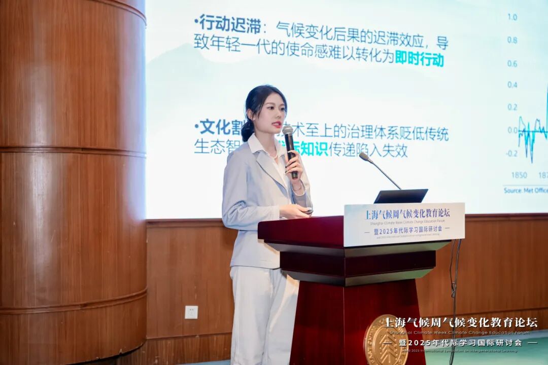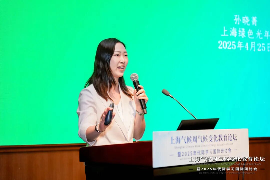 上海绿色光年环保服务中心项目运营孙晓菁汇报了研究团队通过全国性桌面调研,总结了中国社区气候变化教育的在地实践特征,提出融合技术创新与文化传承的“中国范式”,并强调代际教育在非正式教育场景中的独特价值与推广潜力。