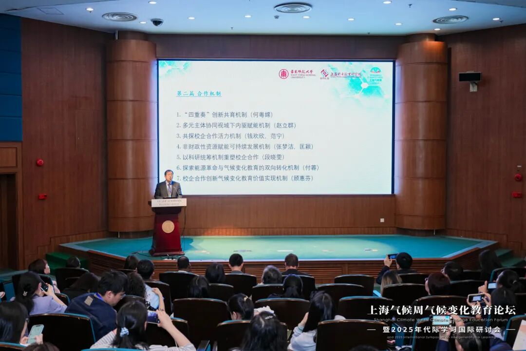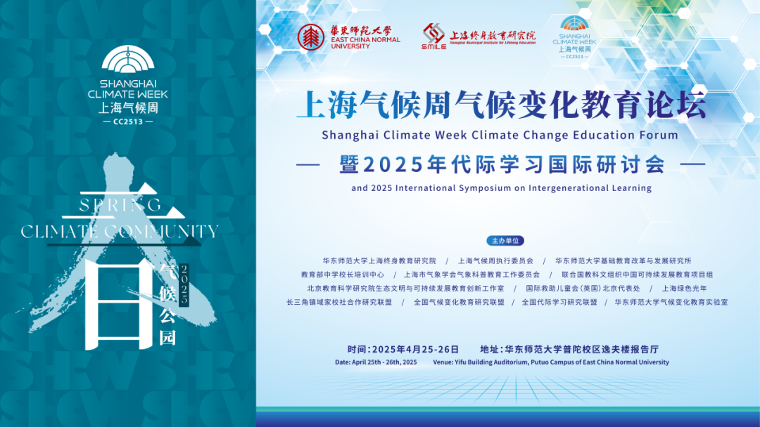 4月25日,上海气候周气候变化教育论坛暨2025年代际学习国际研讨会在华东师范大学隆重召开。本次会议汇聚了11位国际知名学者、15位国内一线教育工作者和研究者的最新成果,通过专题汇报与研讨,系统呈现代际气候变化教育的全球智慧与中国行动。来自代际教育、气候变化教育及终身教育领域的工作者、一线校长与教师、教育行政部门领导、科研机构学者及教育传媒专家等近200人现场参会,六千余人观看在线直播。
