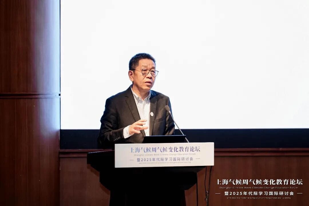 中国教育学会副会长、华东师范大学基础教育改革与发展研究所所长李政涛在致辞中回顾了华东师范大学在气候教育领域的实践成果:过去一年来,学校系统梳理了近40个创新案例,连续举办第三届、第四届“学校家庭社会协同开展气候变化教育研讨会”,出版《气候变化教育的中国行动(第一辑)》,并创新性发布全球首个《气候变化教育指导纲要》老年教育版与校企合作版,有效激活了老年群体的生态智慧,推动产学研协同创新。李政涛特别强调,华东师范大学开创的“一老一小”代际学习模式,通过知识对流弥合代际认知差异,以情感共鸣唤醒跨世代责任担当,为构建覆盖全生命周期的气候教育体系提供了重要支点,展现了中国特色气候变化教育方案的创新价值。