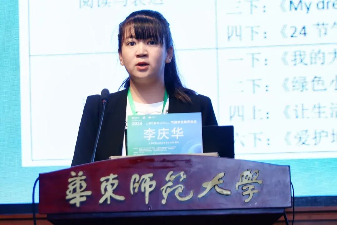 上海市金山区前京小学钱欢欣校长、上海市金山区生态环境局宣传与信息管理中心宣传教育室蒋轶婷主任、上海凤凰驿站文化体育发展有限公司石楠总经理,以及上海市金山区前京小学龚瑾晔、盛晓燕、王玲凤老师,以团队形式围绕《在“项目式学习”中打造气候变化教育》的主题进行了分享。该团队指出,自党的十八大以来,气候变化教育受到了越来越多的重视,形成了具有中国特色的“绿色学校、绿色课程、绿色教师”以及“绿色社区”的教育方案。团队在与华东师范大学李家成教授的合作下,以项目式学习为核心,推进气候变化教育的深入实施,并从前瞻性思考、系统性架构和实践案例三个方面分享了实践经验。