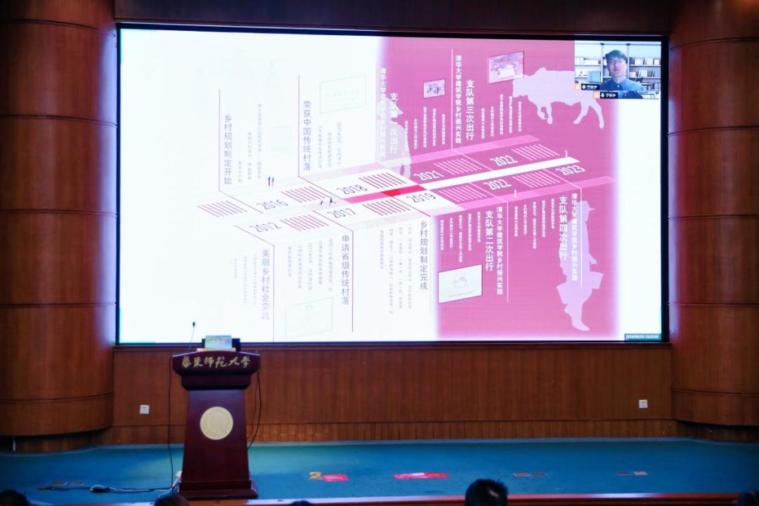 清华大学建筑学院于乐宁博士生以《古村落绿色改造与乡村振兴中的气候变化教育青年实践》为题展开交流与分享,重点讲述了其在2020-2022年期间主持的两个可持续发展项目,分别是位于张家口的“草原方舟项目”和乡村振兴背景下的“冷泉村落集中供冷项目”。