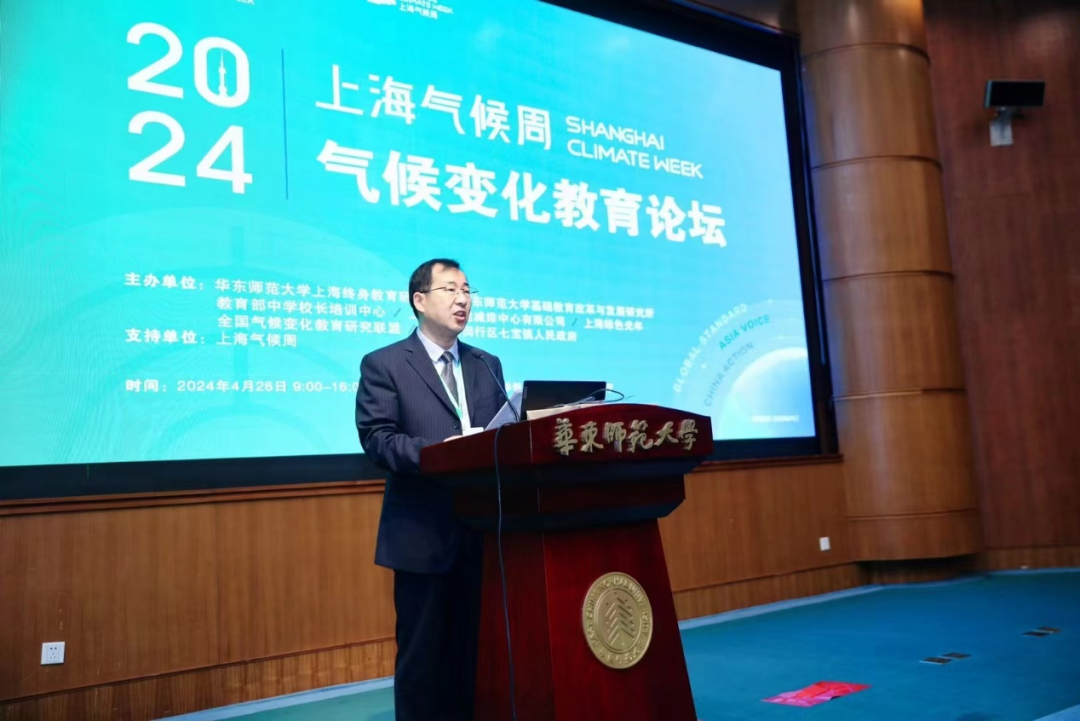 2024年4月26日,由华东师范大学上海终身教育研究院、华东师范大学基础教育改革与发展研究所、教育部中学校长培训中心、上海市节能减排中心有限公司、上海绿色光年、全国气候变化教育研究联盟和上海市闵行区七宝镇人民政府联合主办,上海气候周支持的“气候变化教育论坛”在华东师范大学举行。该论坛吸引了一百余位全国各类教育领域的专家学者、关注气侯变化的企业和社会组织代表及媒体代表参会。