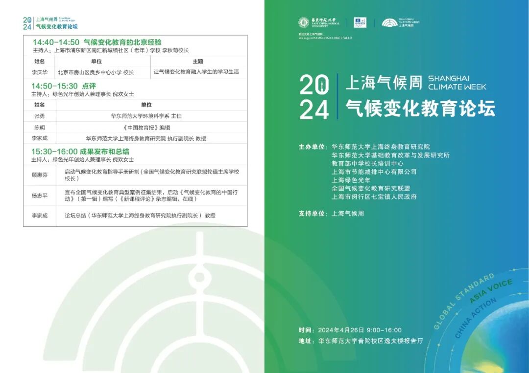 会议邀请 | 2026上海气候周气候变化教育论坛